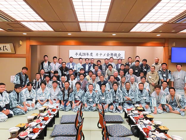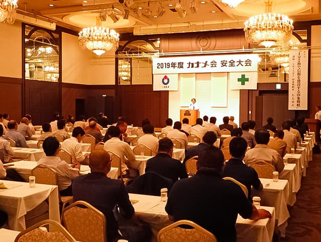 お客様に満足頂くための工事サービスの追求、職人の方々が安全に安心して仕事が出来る環境造りのためにカナメと全国の協力会社の相互で活動している組織です。