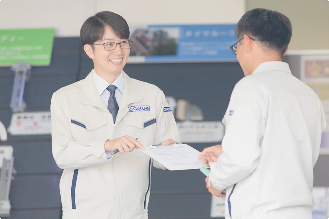 自社工場で開発製造した製品で営業できることが、カナメ最大の強み。徹底した品質チェックとわずかなミスや誤差も見逃さず、全国へ安定したクオリティを届けます。
