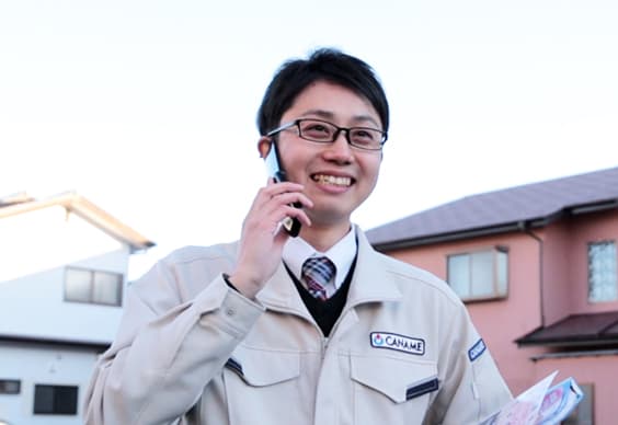 住宅リフォーム部門に所属し、一般住宅の屋根改修を中心とした総合リフォームの提案営業を行っています。エンドユーザーであるお客様と直接お話をして、ご要望にあった工事の提案をするのが私の仕事。カナメのリフォーム製品やサービスは種類が多く、ご要望にピッタリの提案をするのは容易ではありませんが、それが面白いところ。それぞれお悩み箇所やこだわりなど、同じ案件はないのでそのお客様にあった工事は何かを考えるのは楽しいですよ!