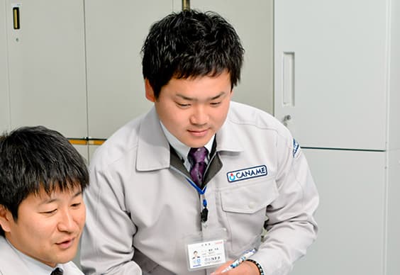 実際に配属される部署はわからないとのことだったのですが、説明会で「カナメは社員それぞれが助け合い、みんなで目標を達成しようと努力している」と聞いて、そういった上司や同僚などに気軽に相談したりアドバイスをもらえる会社の雰囲気にも魅力を感じ、配属される部署は関係なくカナメに入社したいと思いました。